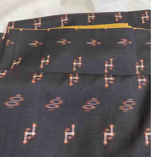 産地をお聞きすると、こげ茶と白の糸で織った伊那紬の段熨斗目ということで、問屋さんオリジナルの意匠のお品でした。そういえば上田紬のリョウマさんがYouTubeで「伊那紬を見つけたら買いです」とおすすめされてたなぁ、と思い出す。めちゃくちゃ好きなタイプの絣。帰宅してからも三日三晩、伊那紬のことが頭から離れませんでした。