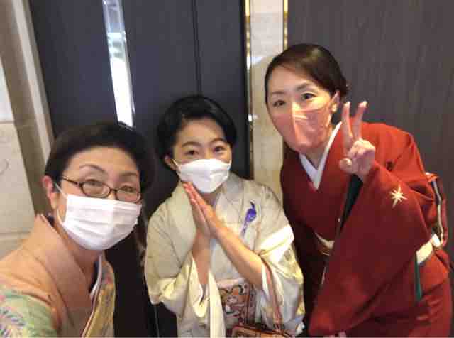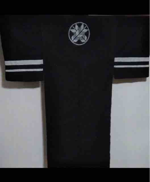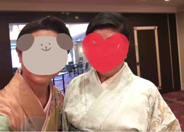 黄色の色無地(一つ紋)に黒羽織をはおってカジュアルダウンさせて着ました。半衿も手拭い(濱文様の梅むらさき)にして格下げ、足袋も黒でカジュアルに。