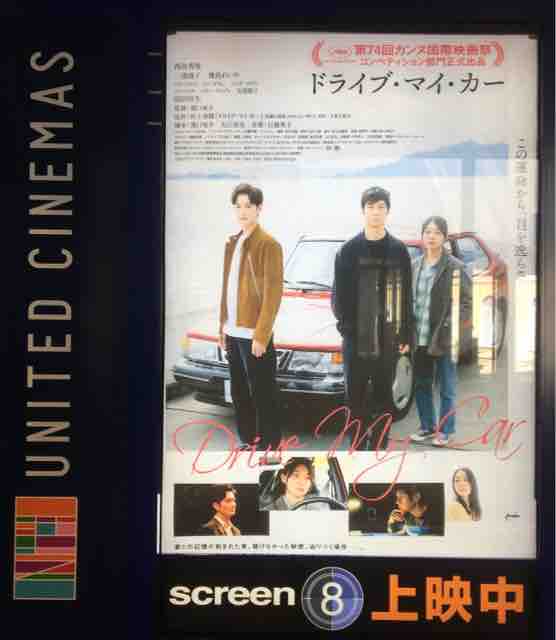 観たのは濱口竜介監督『ドライブ・マイ・カー』でした。長くて良かった。村上春樹が好きなので、いつまでも観ていたい作品です。俳優さんも良かったし、ロードムービーも好きだし、クルマの運転も好きなので、作品世界に浸ることができました。