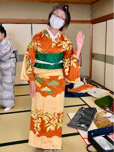 私たちも体験できます。着物しるべの会のお仲間もいらしていて記念撮影!