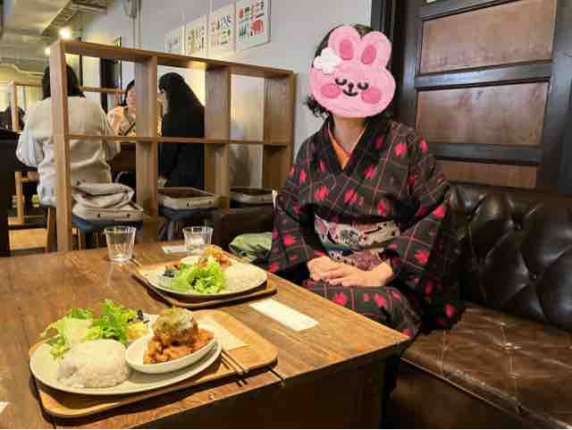 今日は、着物しるべの会で仲良くなった姫ガールさんとご一緒させていただきました。まずはカフェでランチ!美味しかったぁ!