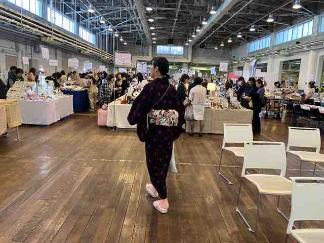 ランチ後、姫ガールさんと素材博覧会2024KOBE秋の会場へ。わーお、広い会場にハンドメイド素材のブースがたくさん!ハンドメイドできない私もテンション上がってワクワク!