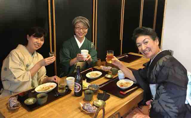 下の写真は4年前の夏、KIMONOクラブの先生とYさんと3人で、地元の美術展を鑑賞してから美味しいお蕎麦屋さんでランチをした時のものです。3人とも盛夏の装いですね。とても楽しい一日でした。