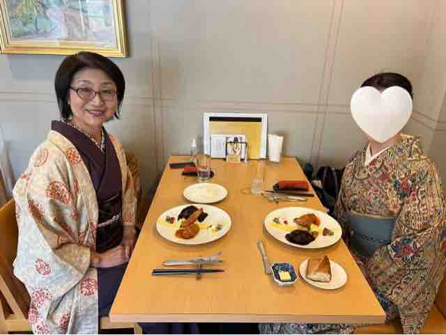 2月15日にホテルオークラ京都で開催された、きもの文化検定パーティーに行ってきました。1級合格者は表彰式のリハーサルがあるので午前中に集合でした。リハが終わったあとロビーに出たら、私が検定を受けるきっかけを導いてくださった朝香沙都子さんとmidoriさんがいらっしゃって、お写真を撮っていただきました。感無量でした!
