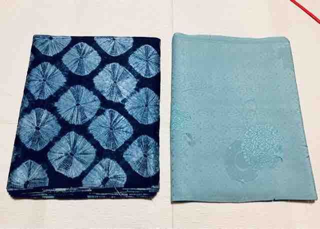 次回、長羽織に仕立てたいのが手蜘蛛絞りの解き反物ときれい色の縫い取りお召しの反物。