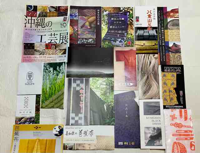 リーフレットもたくさんもらってきました☺️(右下の芭蕉布作りの道具が染められている手拭いは購入)
