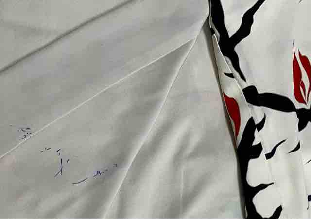 昨日、着たものを畳んでおりましたら、アイボリー色の羽織にシミをつけているのを発見!羽織の前身頃内側に水性ボールペンのインクが! あーやってしまった😩