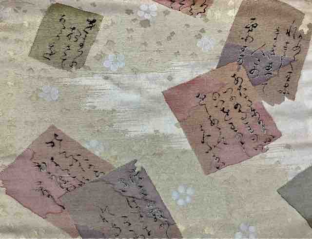 帯は日曜に教会で締めた百人一首の九寸です。