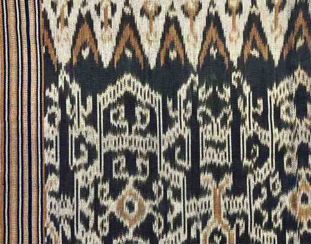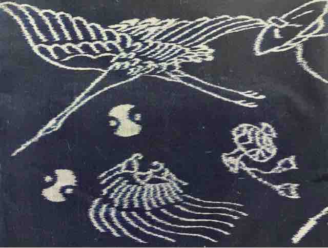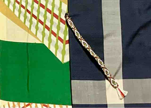 喜久樹のイカットの名古屋帯です。尺がすごく長かったので、手持ちの正絹名古屋帯の長さに合わせて自分でカットしました。ところが木綿と正絹では布の伸縮率が違うようで、いざ身体に巻いてみるとえらい短くなってました。泣きながら、カットした帯地を、もう一度戻して縫いつけた苦い思い出があります。